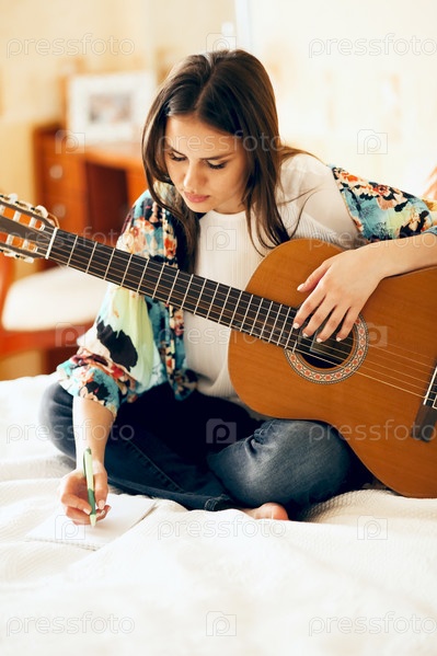 Женщина пишет песню на кровати