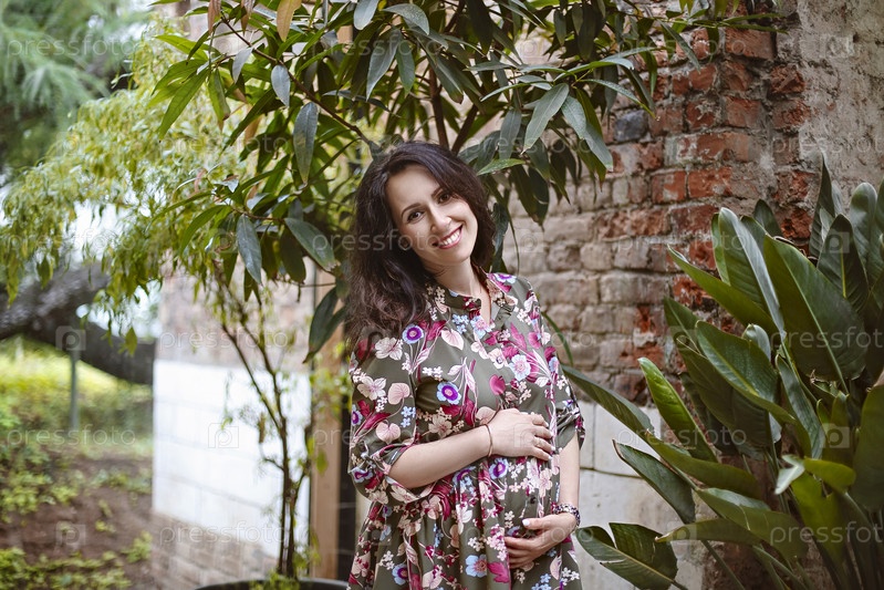 Красивая беременная женщина в саду