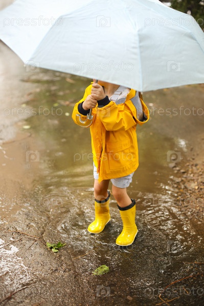 Маленькая девочка под зонтиком в дождливый день