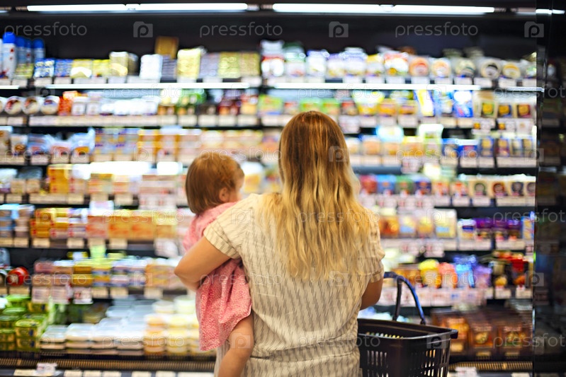 Мать и ребенок проводят время за покупками в супермаркете