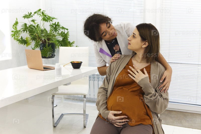 Молодая счастливая благодарная женщина-пациент обнимается с дружелюбно позитивной афроамериканкой-врачом после получения хороших результатов анализов или выздоровления во время приема в медицинской клинике