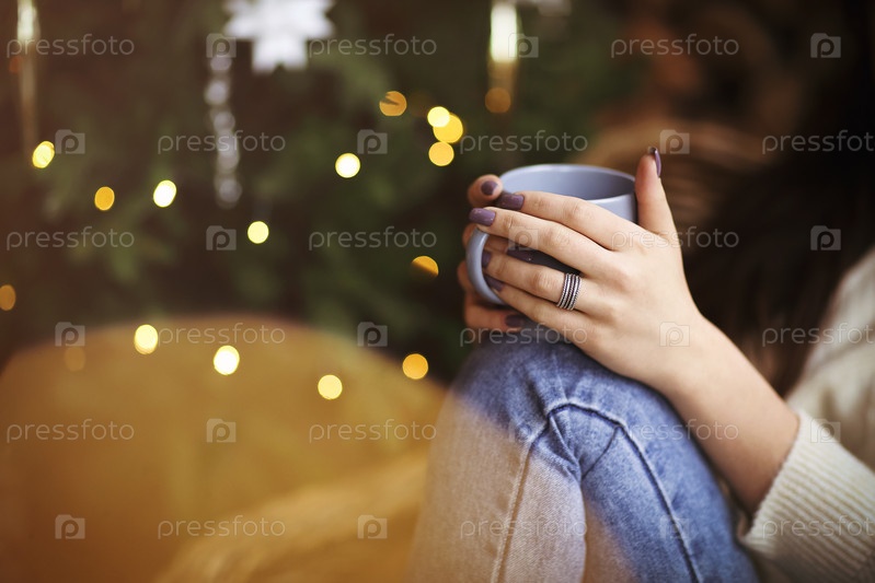 Наслаждается запахом горячего напитка