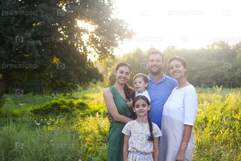 Родители с детьми в сельской местности на открытом воздухе