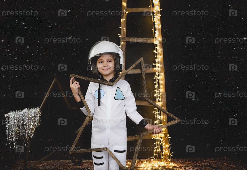 Футуристическая девочка-астронавт в белой полной форме и шлеме