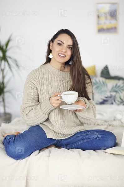Молодая счастливая брюнетка с книгой