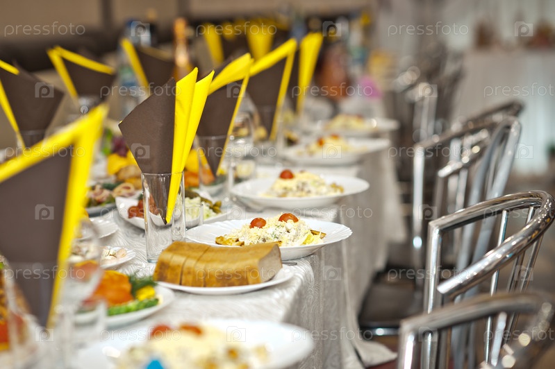 Праздничный стол с рядом блюд