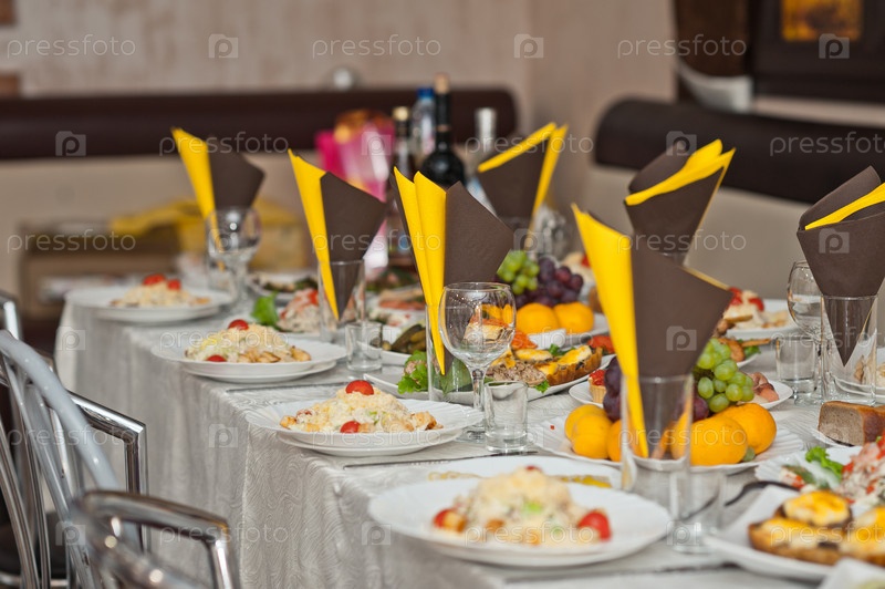 Красиво накрытый стол на свадьбе