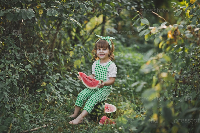 Красивый портрет ребенка с арбузом
