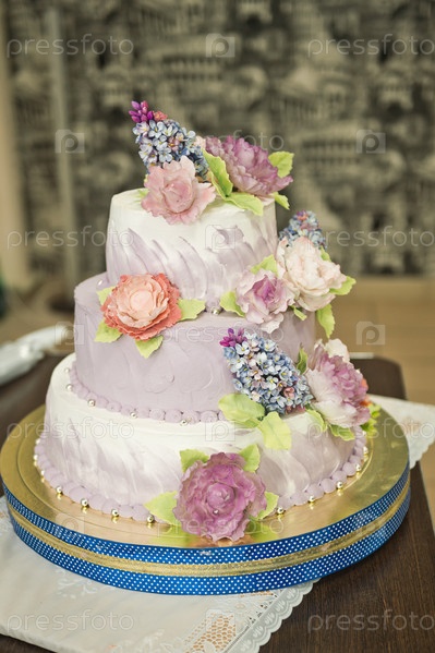 Свадебный торт и яркие цветы