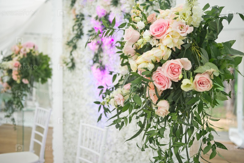 Элементы оформления праздничного зала в виде струящихся букетов