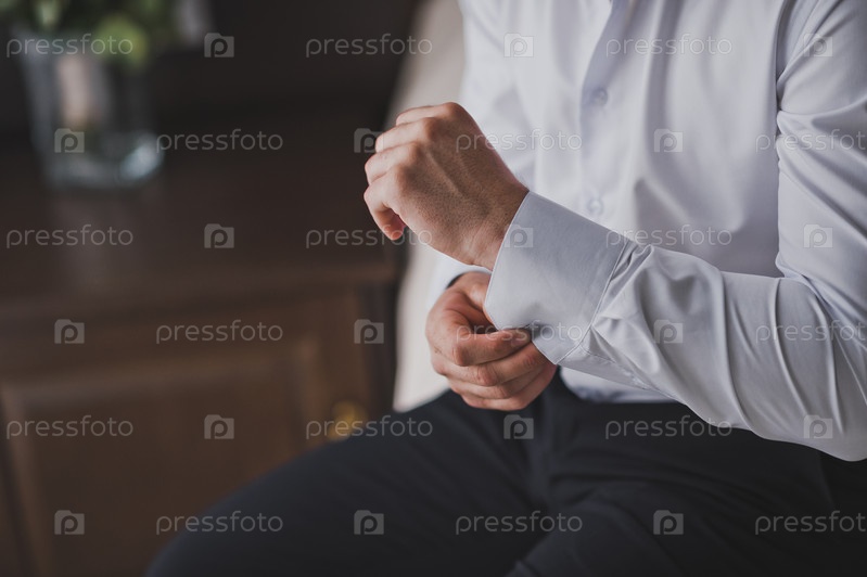 Застегивание запонок на рукаве рубашки