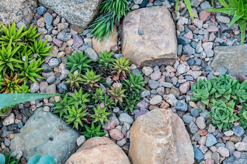Вид сверху на суккуленты ботанического сада