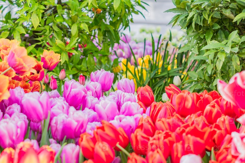 Красочные тюльпаны на поле.Природный пейзаж