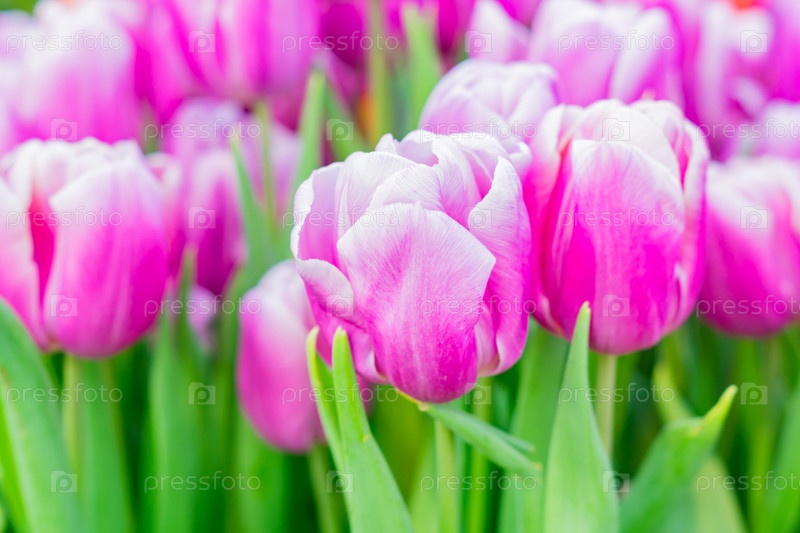 Ярко-розовые цветущие тюльпаны, цветочный фон