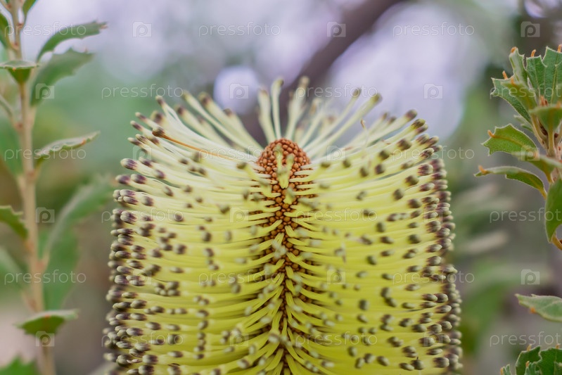 Большой план цветочного дерева банксии в саду