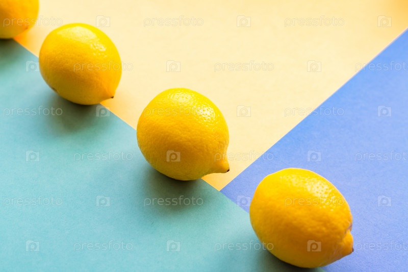 Вид сверху на три лимона на красочном пастельном фоне