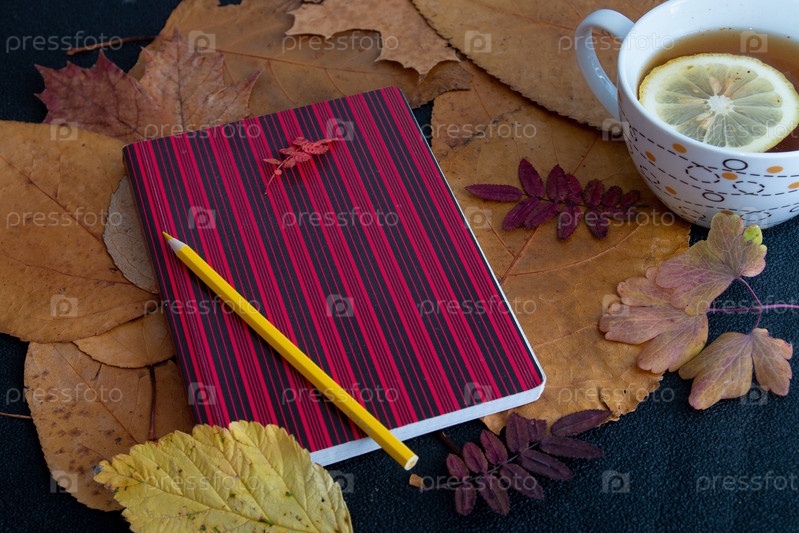 Осенние листья и блокнот