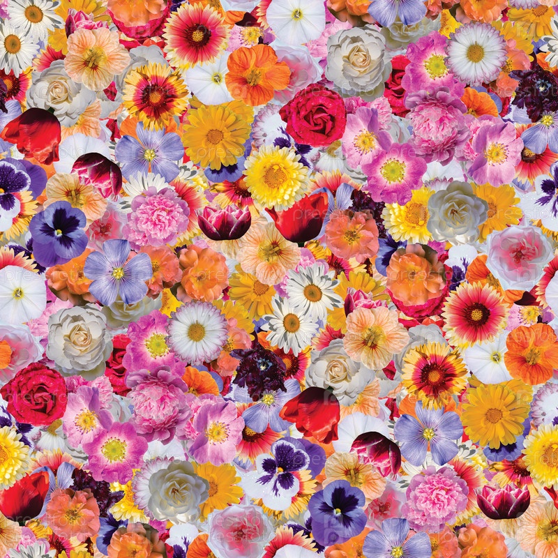 Коллаж с цветочным принтом, бесшовный разноцветный цветочный узор. нежные цветы разного размера и окраски. декоративные элементы для дизайна и творчества