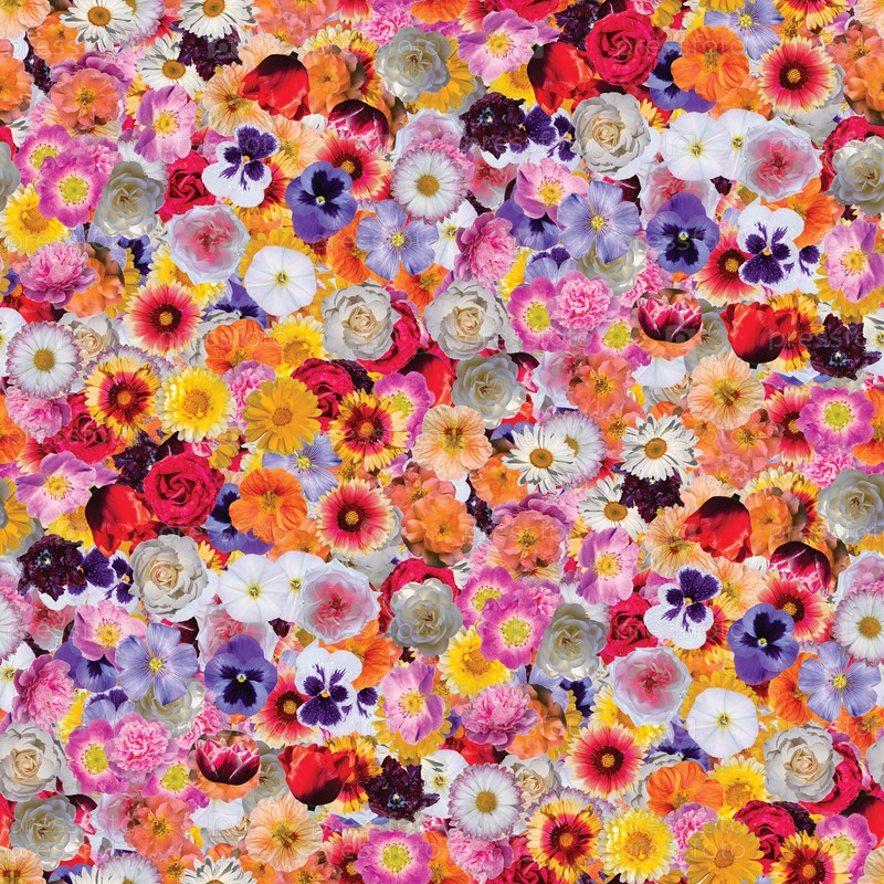 Коллаж с цветочным принтом, бесшовный разноцветный цветочный узор. нежные цветы разного размера и окраски. декоративные элементы для дизайна и творчества