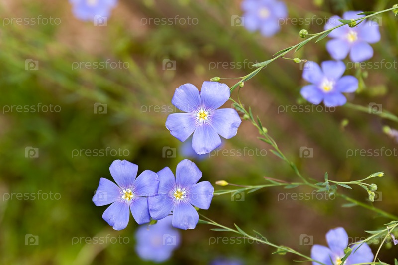 Синие цветы декоративного австрийского льна на сложном фоне. Цветы льна расцвели в саду