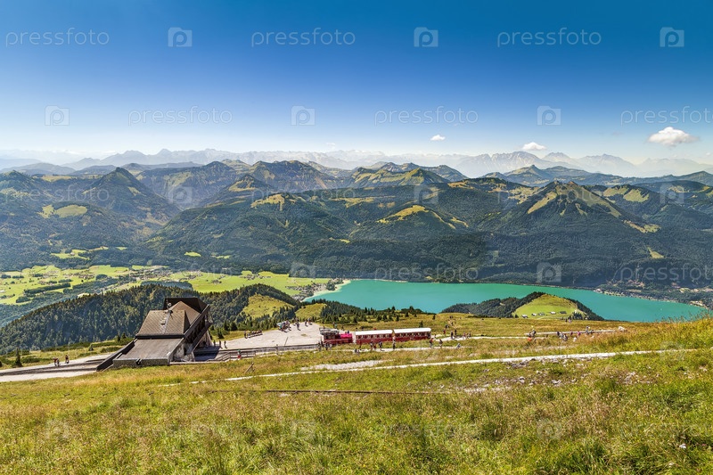 Вид на озеро Вольфгангзее с горы Шафберг, Австрия