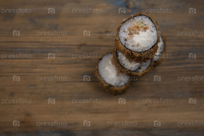 Суши на деревянном столе