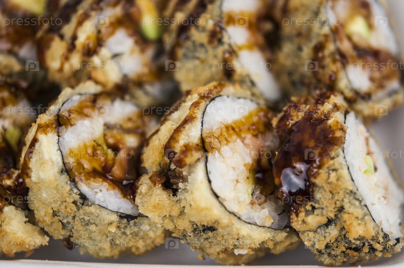Суши-ролл с лососем и креветками в темпуре