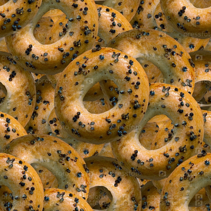 Бублики с маком, узор, бесшовная текстура, вид сверху. Кондитерская концепция. Идеи дизайна