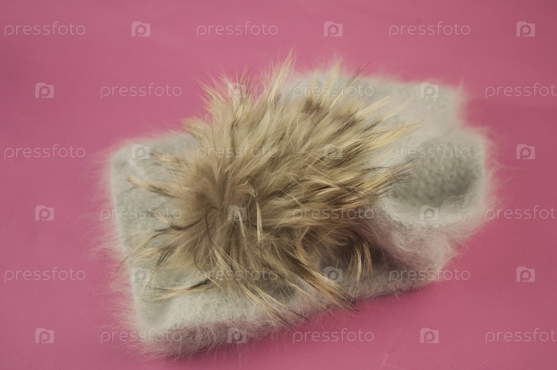Зимний вязаный шарф спереди на розовом фоне
