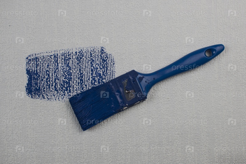 Краска кистью, рабочая роспись по поверхностной росписи стен квартиры, ремонт темно-синей краской. Оставьте пустое пространство для копирования белым, чтобы рядом написать описательный текст