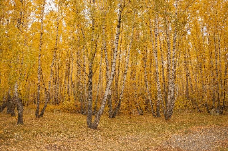 Осенний пейзаж. Красивая сцена с березами в желтом осеннем березовом лесу в октябре среди других берез в березовой роще