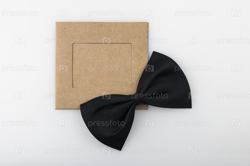 Фоторамка и галстук-бабочка на белом фоне