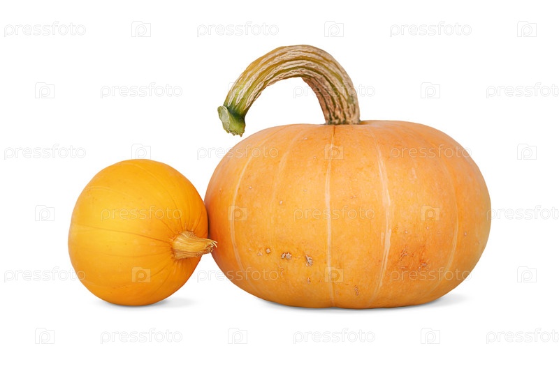 Две оранжевых тыквы с красивыми хвостиками изолированные на белом фоне
