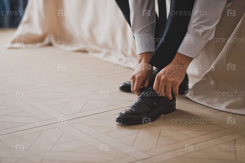 Мужские руки носят обувь