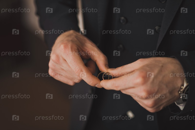 Мужские руки, прислонившиеся друг к другу обручальные кольца