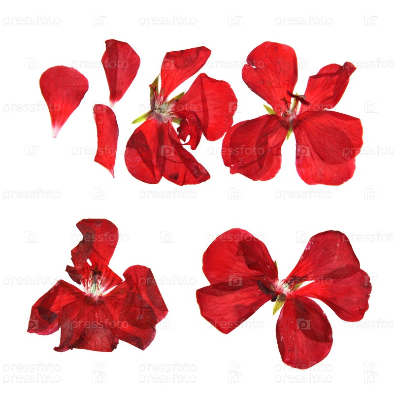 Прессованная многоцветная герань задает перспективу. Сухие нежные изолированные цветы и лепестки пеларгонии