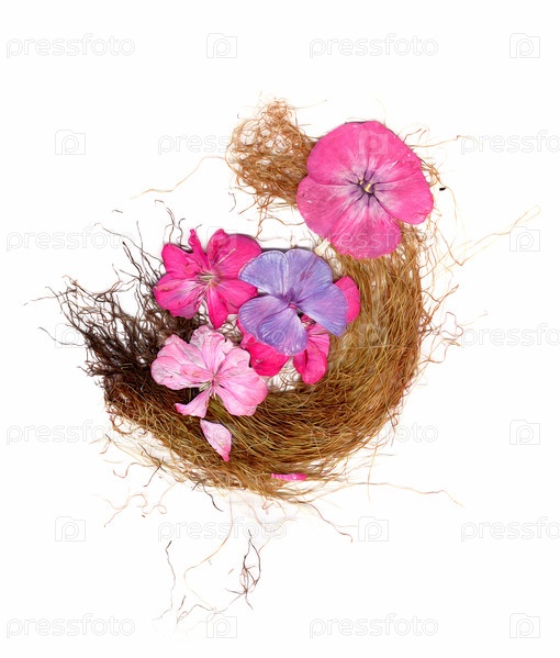 Аппликация, букет из сухих флоксов и травы