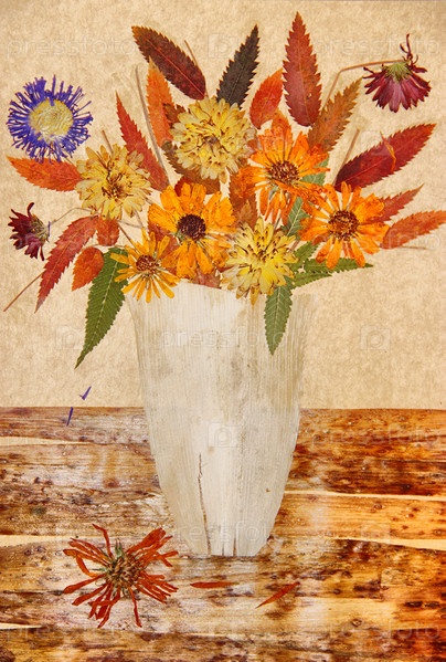 Рисунок сухих осенних листьев растений и ветвей изолированных элементов на фоне белой акварельной бумаги для альбома для вырезок, окрашенных деревянных досок, объекта, грубого осеннего листа