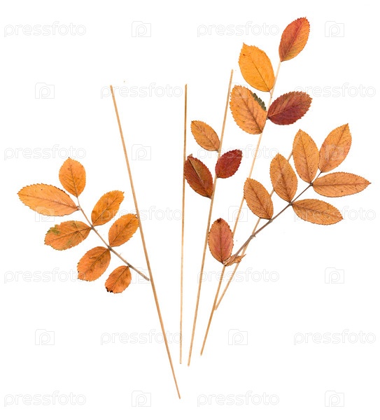 Прессованные листья рябины и травинки