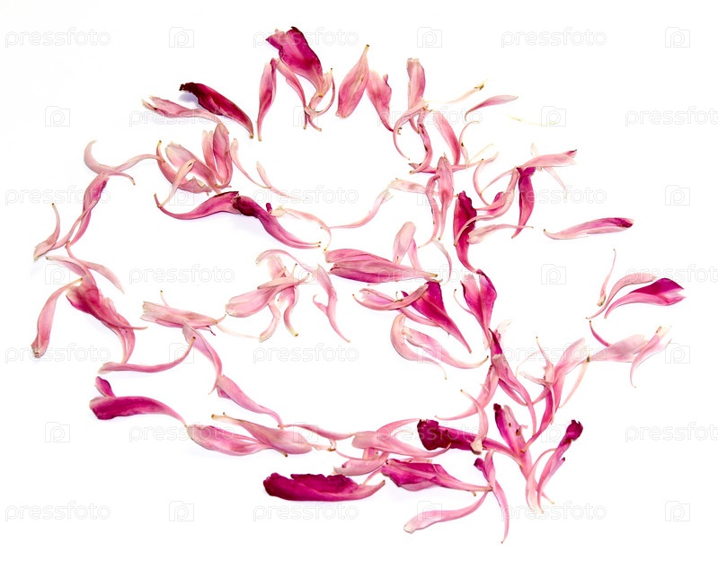 Розовые лепестки пиона разбросаны по столу
