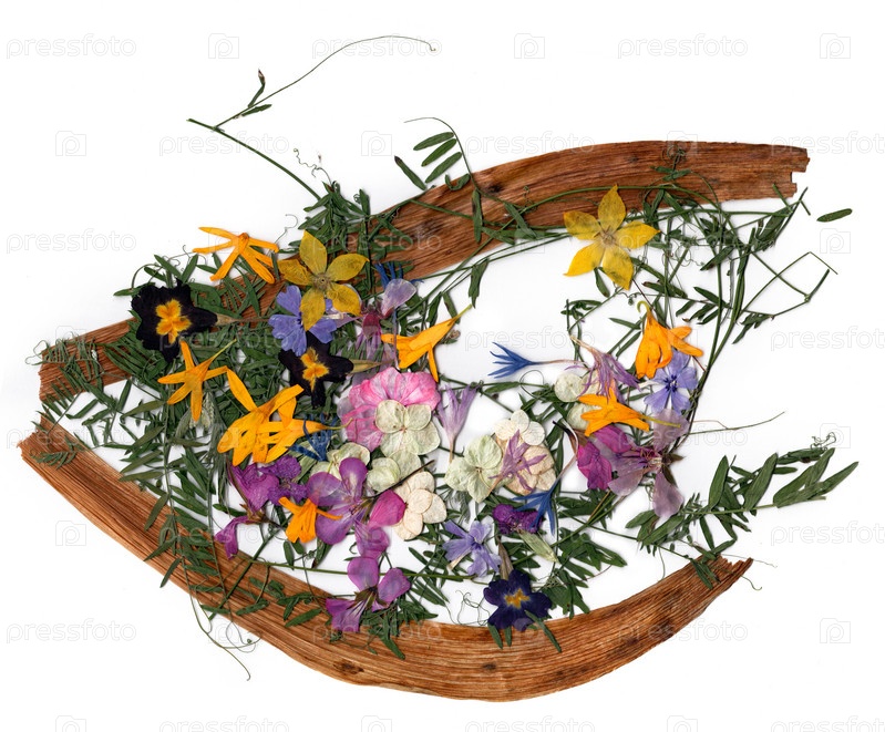 Аппликация букет из сухих цветов