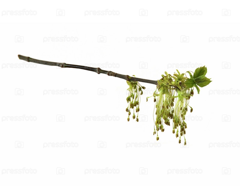 Цветущая кленовая ветвь, цветущая ветвь сережек ивы крупным планом ранней весной, изолированные элементы на белом фоне для альбома для вырезок, объект,