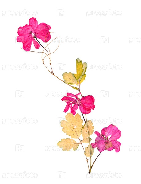 Изолированное применение розовой герани из сушеных прессованных ярких цветов