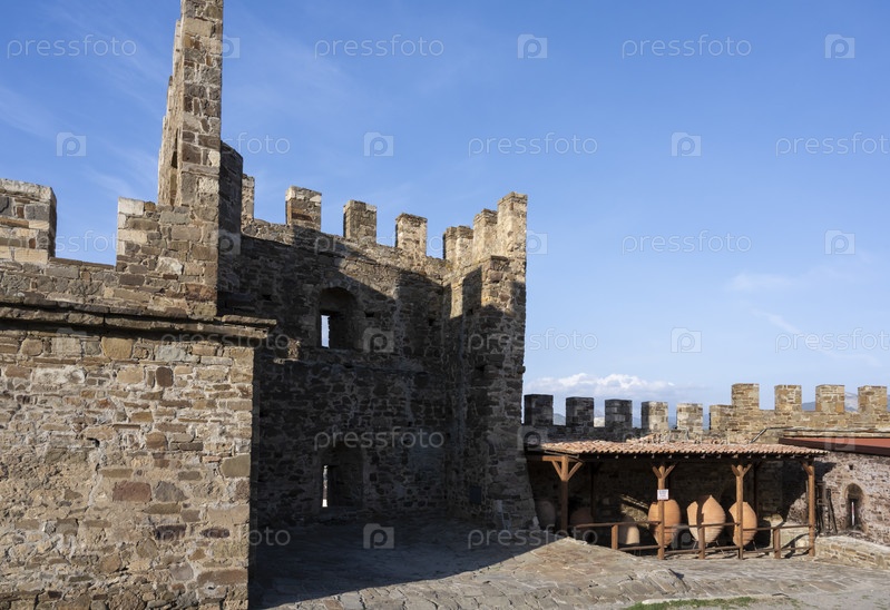 Генуэзская крепость в Судаке, Республика Крым, Россия. Вечером 4 октября 2020 г