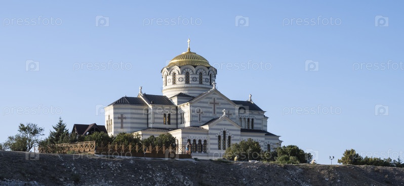 Собор Святого Владимира в Херсонесе Таврическом в Севастополе, Республика Крым, Россия. Вечером 22 сентября 2020 г