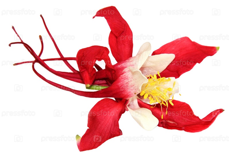 Большие красные и белые цветы королевской аквилегии, изолированные на белом фоне. Изолированный цветок коломбины