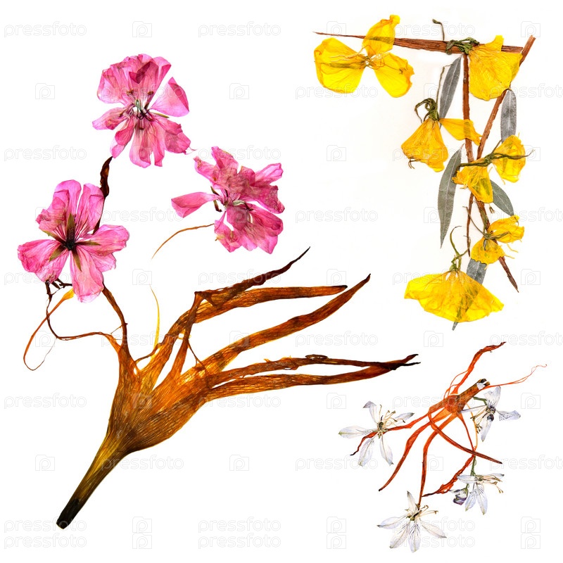Аппликационный букет из сухих причудливых лепестков лилии и прессованных разноцветных цветов