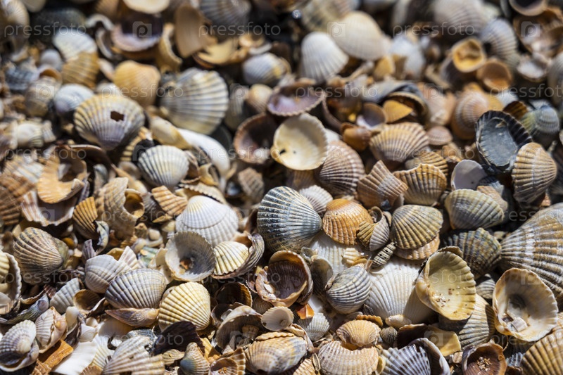 Фон из ракушек на черноморском побережье Республики Крым, Россия