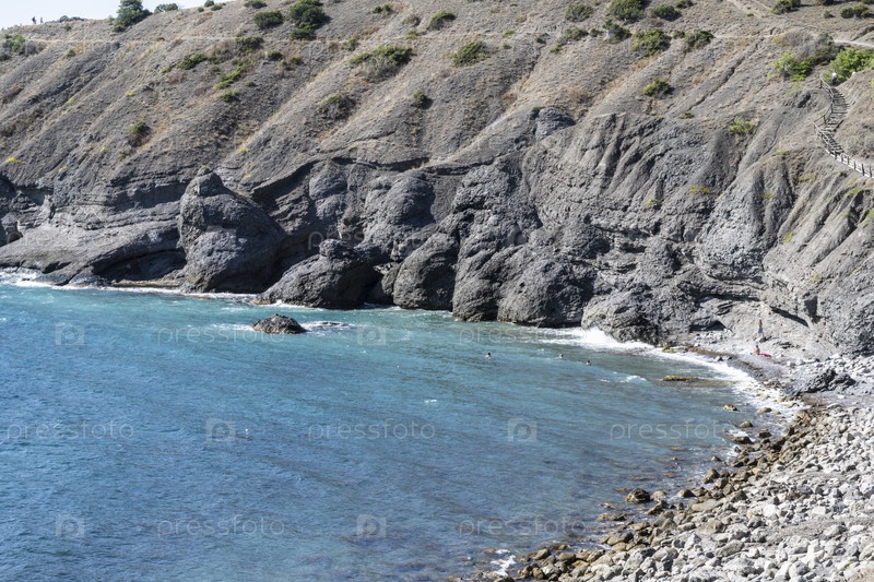 Королевский пляж в поселке Новый Свет в Республике Крым, Россия. Ясный солнечный день 5 октября 2020 г