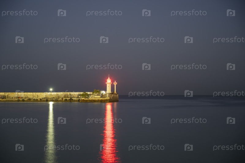 Красный свет маяка в городе Ялта, Республика Крым, Россия. Вечером 14 сентября 2020 г